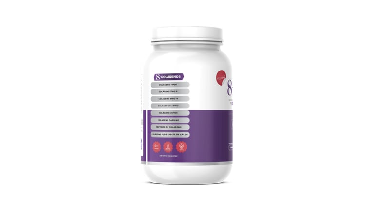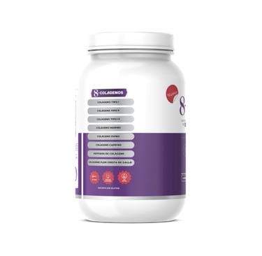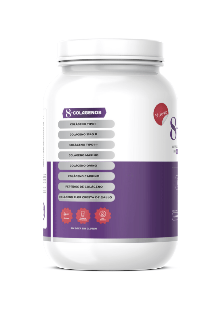 Fórmula con 8 tipos de colágeno para piel, huesos y articulaciones.